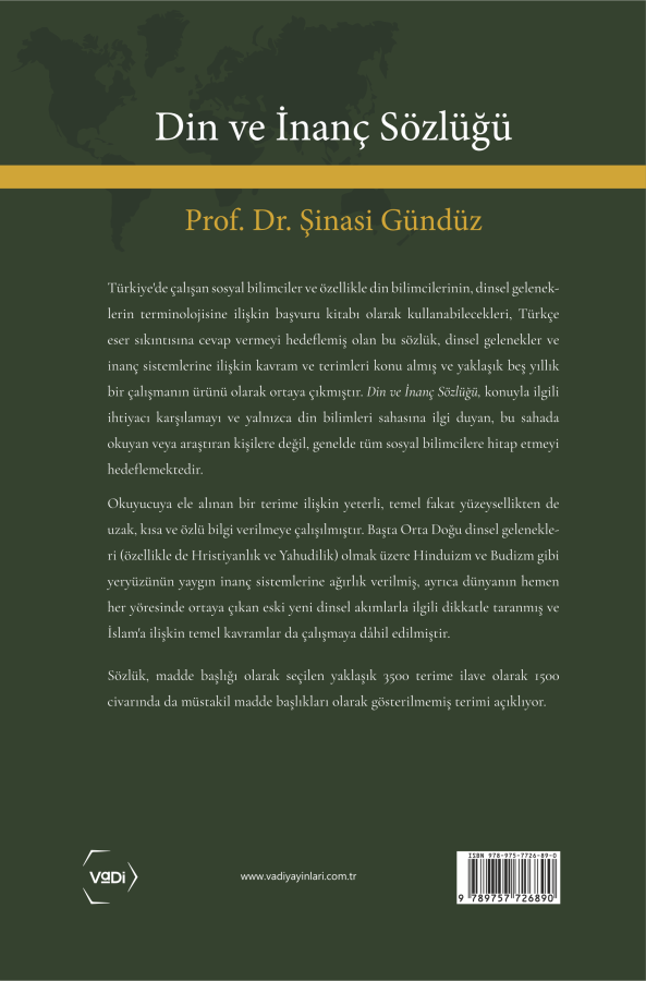 Türkiye'de çalışan sosyal bilimciler ve özellikle din bilimcilerinin, dinsel geleneklerin terminolojisine ilişkin başvuru kitabı olarak kullanalbilecekleri Türkçe eser sıkıntısına cevap vermeyi hedeflemiş olan bu sözlük dinsel gelenekler ve inanç sistemlerine ilişkin kavram ve terimleri konu almış ve yaklaşık 5 yıllık bir çalışmanın ürünü olarak ortaya çıkmıştır. Din ve İnanç Sözlüğü, konuyla ilgili ihtiyacı karşılamayı ve yalnızca din bilimleri sahasına ilgi duyan, bu sahada okuyan veya araştıran kişilere değil genelde tüm sosyal bilimcilere hitap etmeyi hedeflemektedir. Okuyucuya ele alınan bir terime ilişkin yeterli, temel, fakat yüzeysellikten de uzak, kısa ve özlü bilgi verilmeye çalışılmıştır. Başta Ortadoğu dinsel gelenekleri (özellikle de Hristiyanlık ve Yahudilik) olmak üzere Hinduizm ve Budizm gibi yeryüzünün yaygın inanç sistemlerine ağırlık verilmiş, ayrıca dünyanın hemen her yöresinde ortaya çıkan eski yeni dinsel akımlarla ilgili dikkatle taranmış ve İslam'a ilişkin temel kavramlar da çalışmaya dahil edilmiştir. Sözlük, madde başlığı olarak seçilen yaklaşık 3500 terime ilave olarak 1500 civarında da müstakil madde başlıkları olarak gösterilmemiş terimi açıklıyor.
